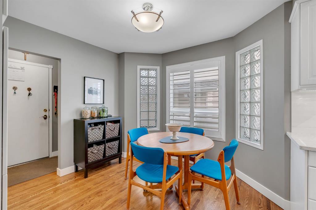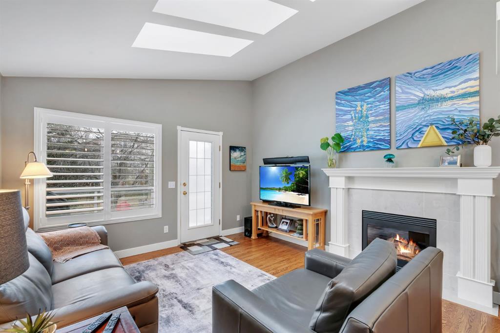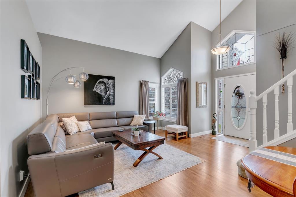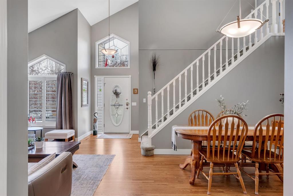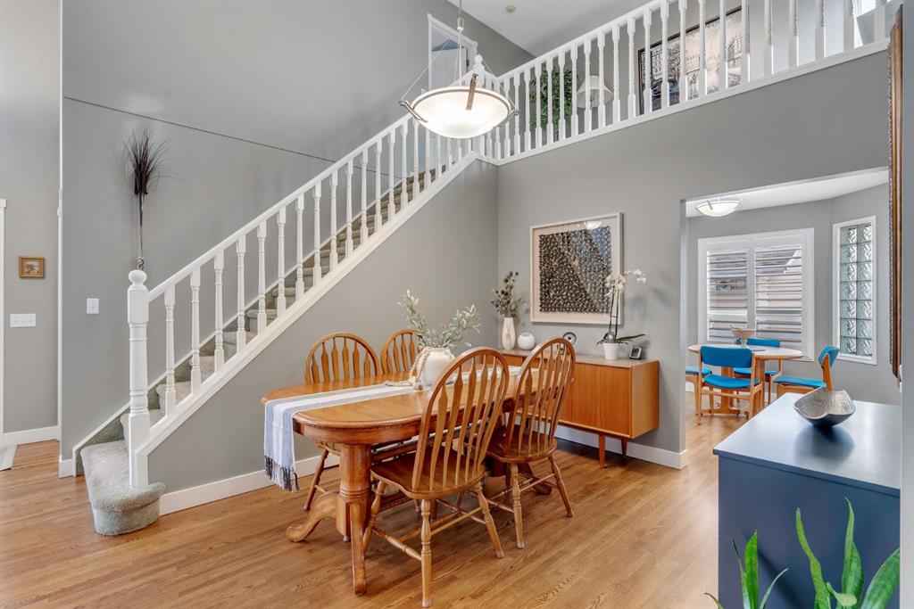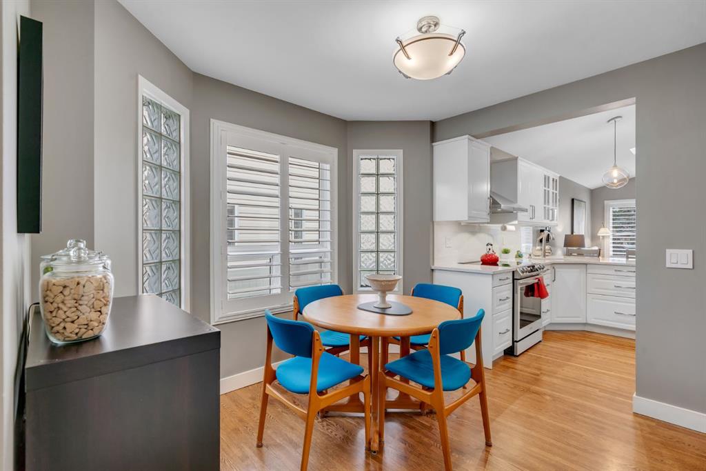 This beautifully upgraded home backs onto greenspace with a sunny south backyard and offers bungalow style living with bonus space for guests or family. As you enter, the main level features soaring vaulted ceilings in the living and dining rooms, refinished hardwood floors throughout, and an upgraded white kitchen with quartz countertops, eating bar, under-cabinet lighting, pull-out drawers, a pantry with organizers, and a newer white glass front Samsung Bespoke fridge with beverage center and induction st...