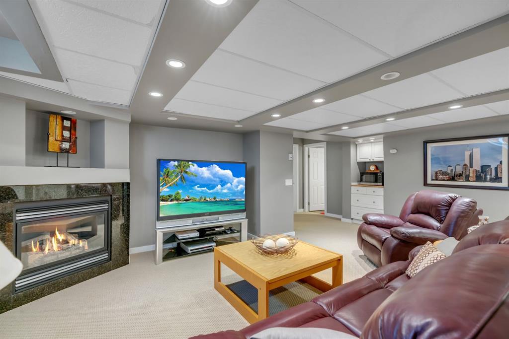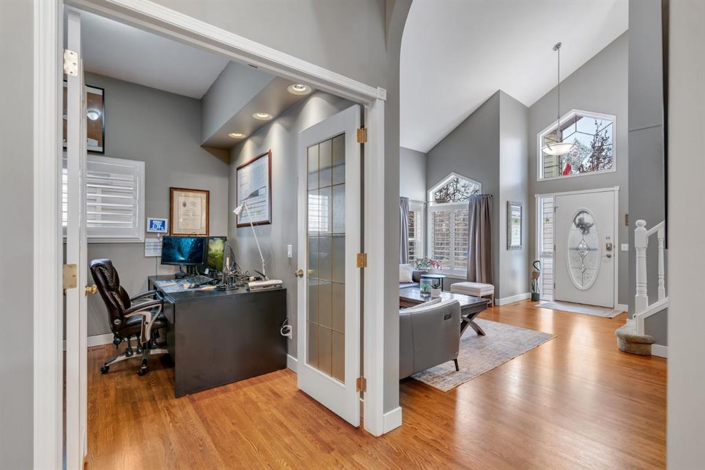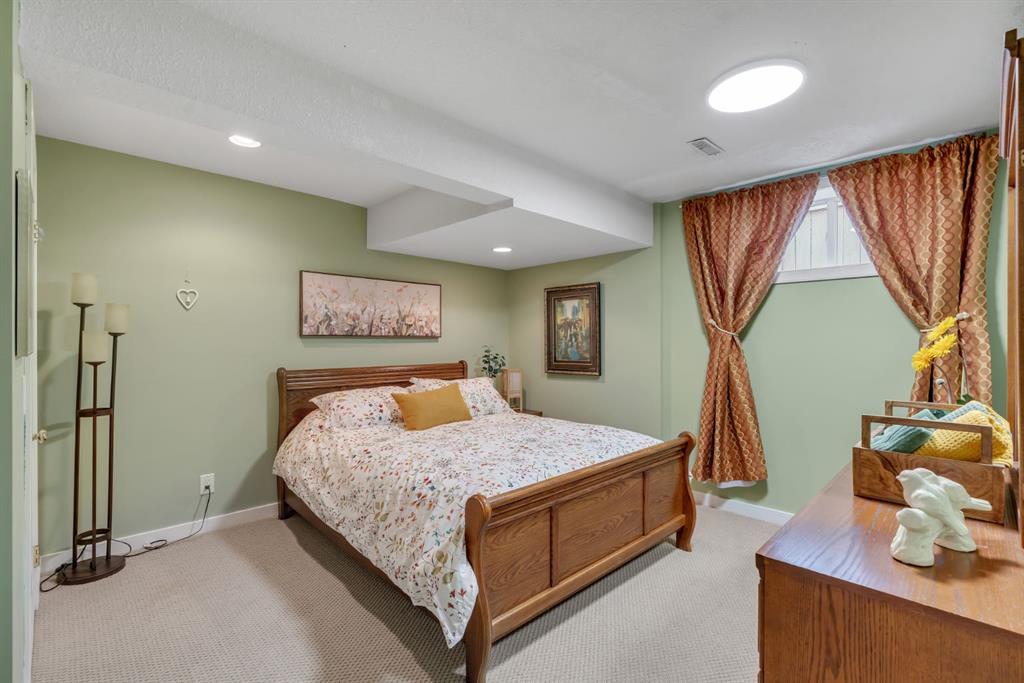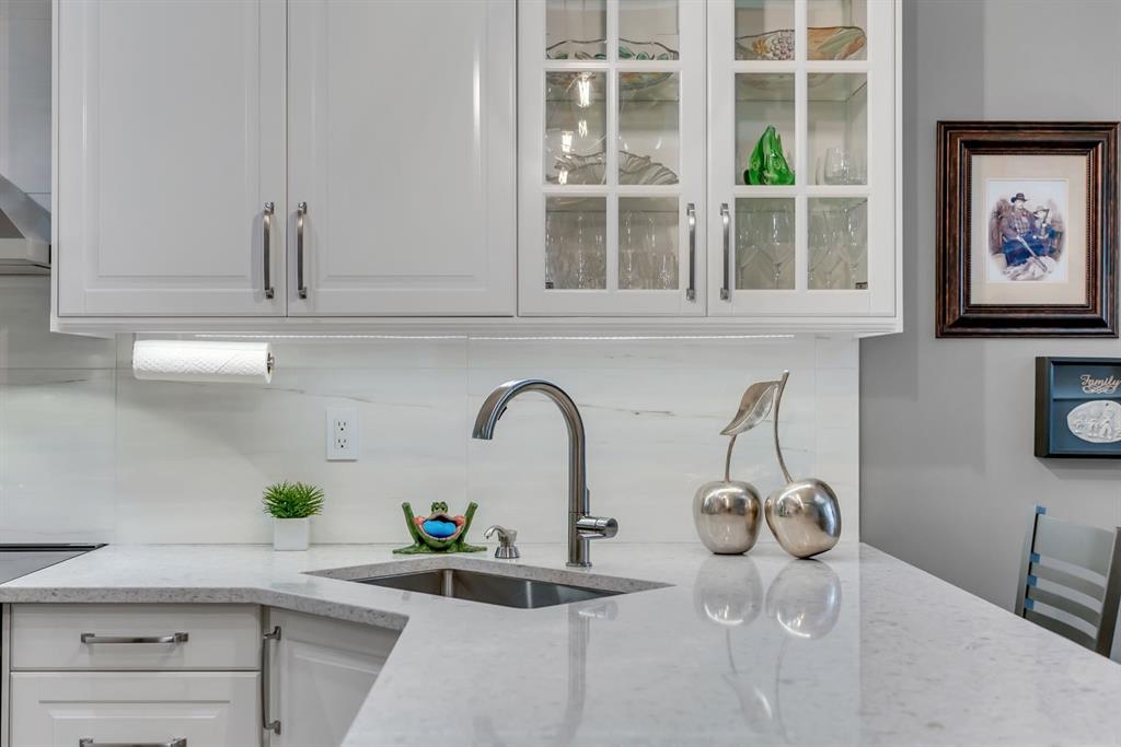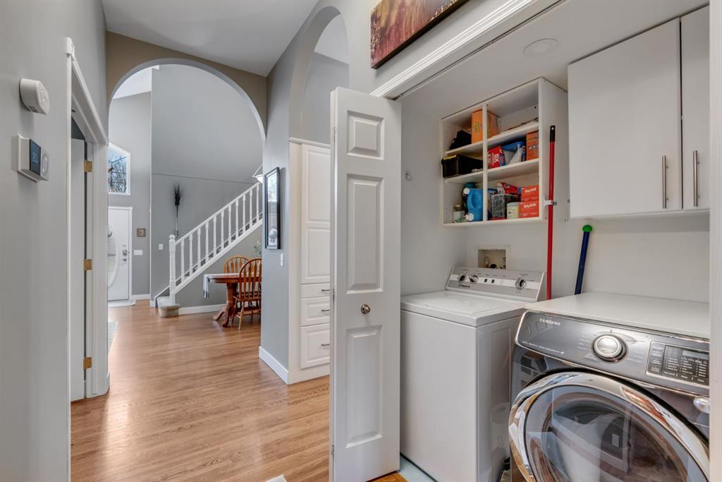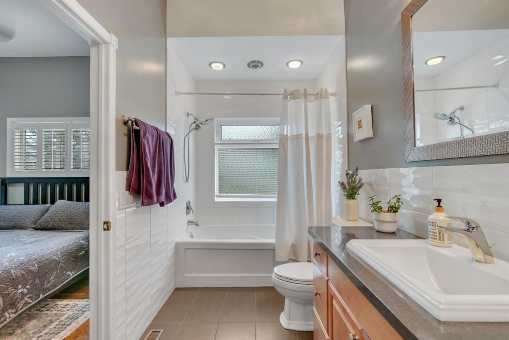 This beautifully upgraded home backs onto greenspace with a sunny south backyard and offers bungalow style living with bonus space for guests or family. As you enter, the main level features soaring vaulted ceilings in the living and dining rooms, refinished hardwood floors throughout, and an upgraded white kitchen with quartz countertops, eating bar, under-cabinet lighting, pull-out drawers, a pantry with organizers, and a newer white glass front Samsung Bespoke fridge with beverage center and induction st...