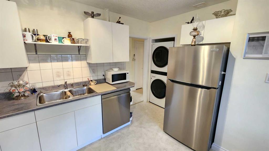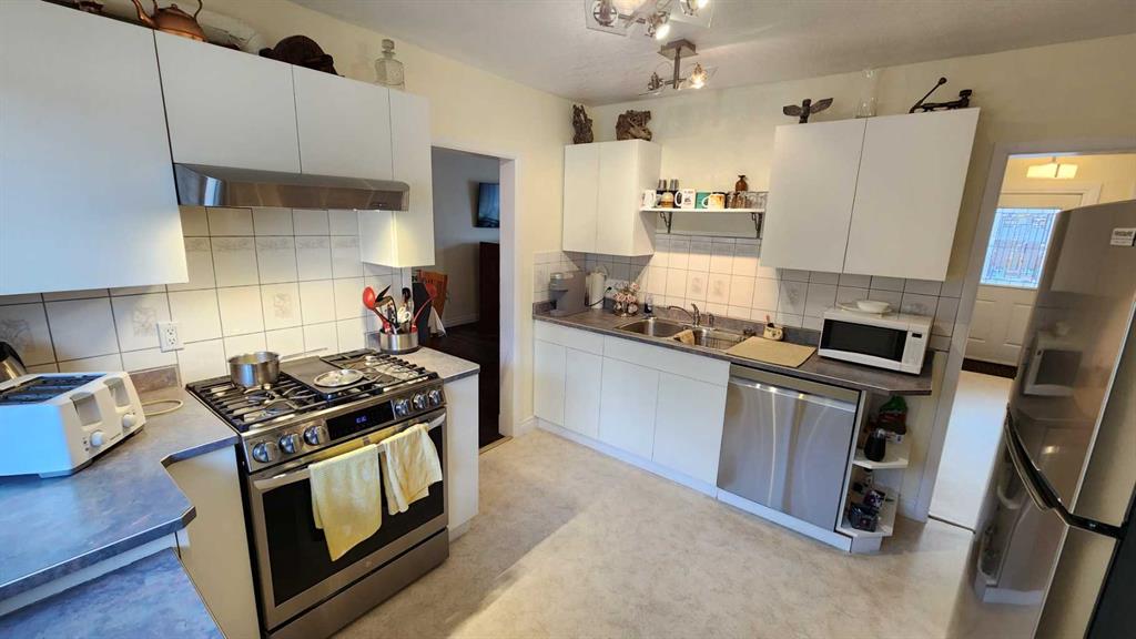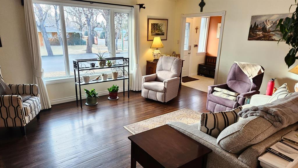 Tasteful renovations + modernizations, with pride of ownership throughout. Basement features its own fridge, stove, and separate laundry room for the suite (illegal status). Modern kitchen, bathrooms + windows. Tons of parking with concrete pad beside & in front of the garage, a gravel drive-through parking area off the alley, and lots of on-street parking also. Lovely hardwood flooring upstairs in the large dining room & living room. Bedroom wardrobe, window coverings, storage shed, and central air-condit...