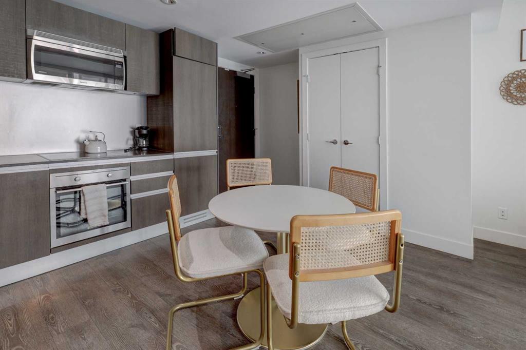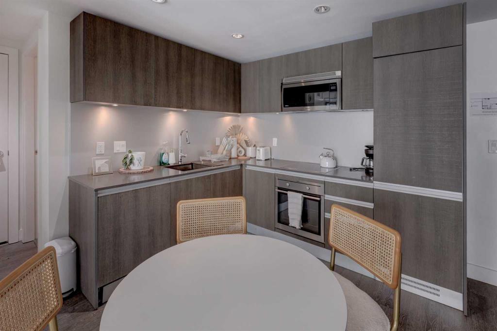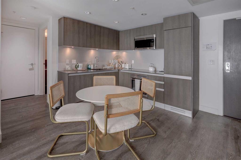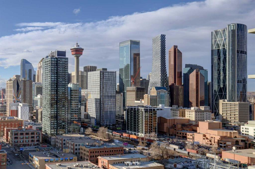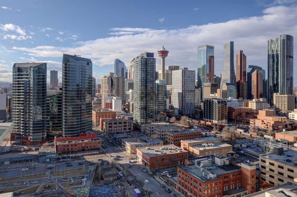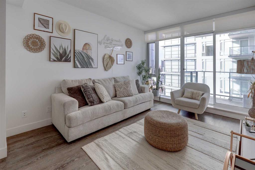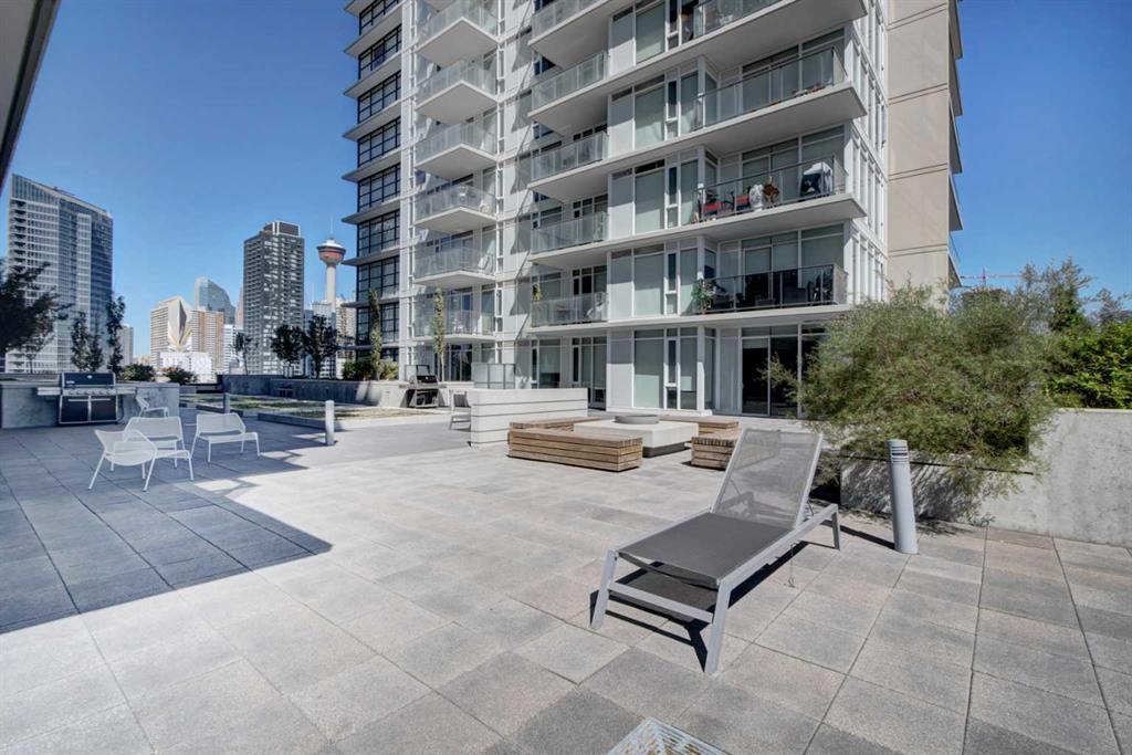 Experience elevated urban living with a VIEW | Modern one Bedroom Condo with titled underground Parking & assigned Storage, in The Guardian South Tower - one of Calgary’s most iconic high rise communities with incredible amenities. Inside, the thoughtfully designed open-concept layout is anchored by a sleek, contemporary Kitchen featuring integrated executive style appliances including a hidden refrigerator, all complemented by elegant stone countertops and modern cabinetry. Flowing seamlessly into the dini...