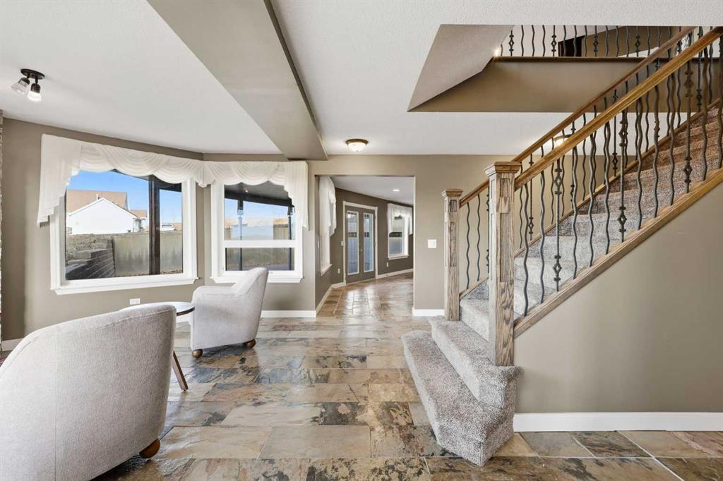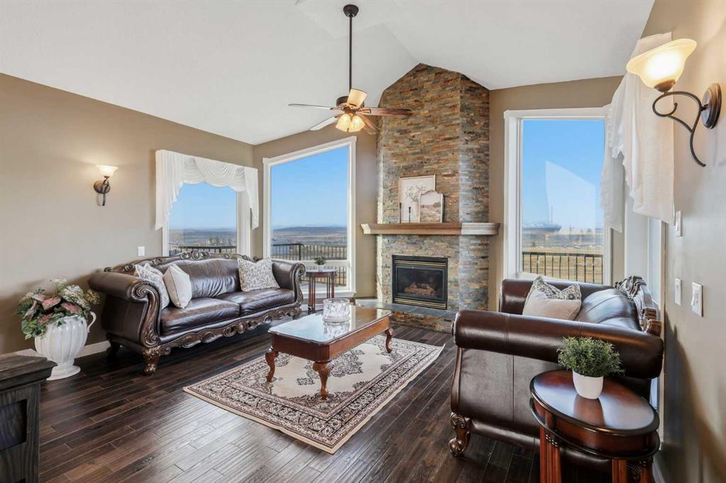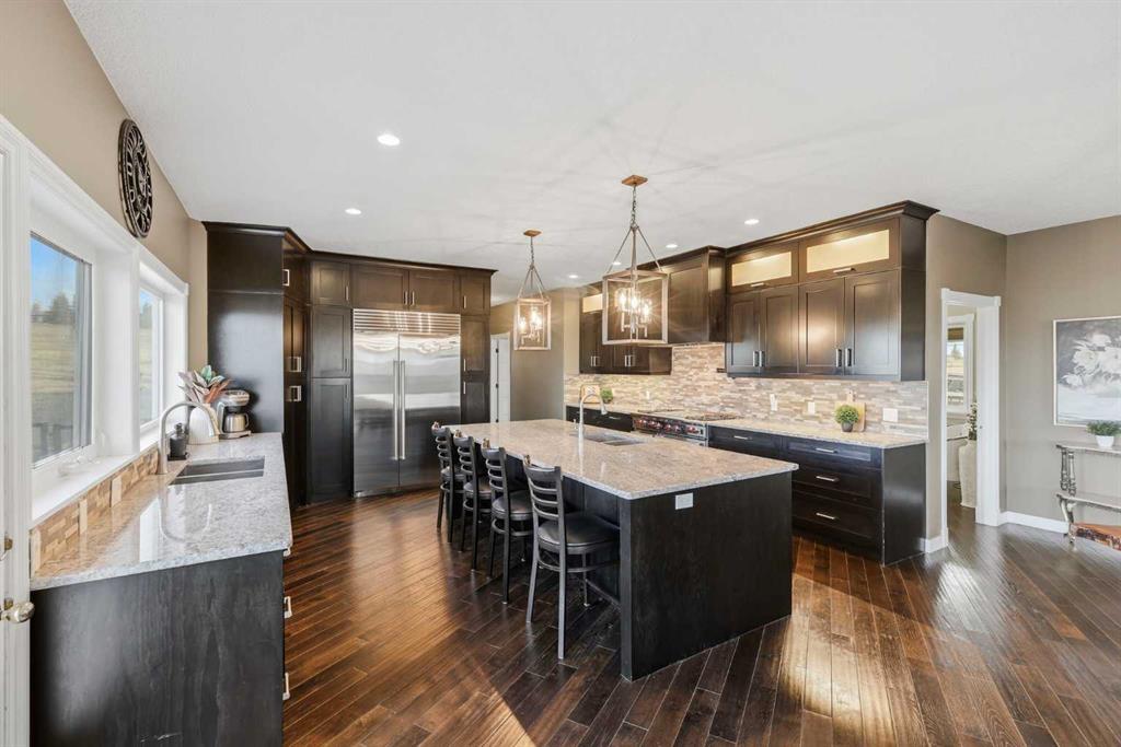 This stunning 4.41-acre property presents an exceptional opportunity to own a picturesque parcel of land with sweeping mountain views and a beautifully designed walkout bungalow. Nestled at the end of a serene, tree-lined drive, the home exudes timeless country charm with its sprawling layout, expansive wrap-around deck, and triple car garage — perfectly combining peaceful rural living with the convenience of being just minutes from Cochrane. Step inside the large front foyer, where vaulted ceilings immedia...