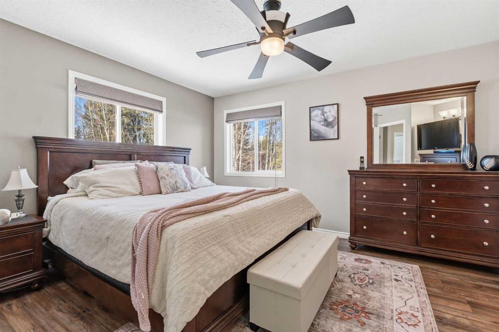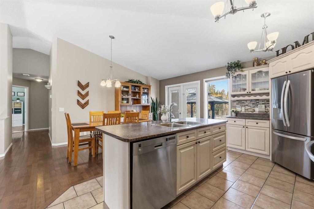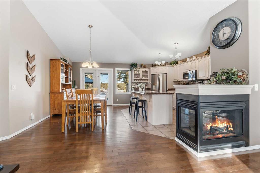 If you’ve been looking for that perfect balance of privacy and convenience, this 5.78-acre property in Pine Meadow Estates is going to check a lot of boxes. Located just a few minutes from Whitecourt and backing onto Crown land, it offers the quiet acreage life without the long commute. The heart of the home features a bright, open floor plan with tall ceilings and beautiful hardwood flooring stretching through the living and dining areas. The kitchen is built for real life, complete with an island, a walk...