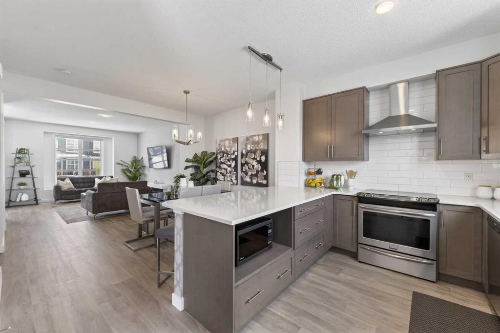 End-unit townhouse with double garage and modern finishes - this is the one you’ve been waiting for! Bright, open-concept main floor featuring wide-plank flooring, large windows, and a spacious living room with a sleek feature wall. The kitchen is clean and contemporary with quartz countertops, stainless steel appliances, shaker style cabinetry, and a stylish white tile backsplash. A generous dining area and convenient 2 piece bath complete the main level. Upstairs offers a well-designed layout with a spaci...