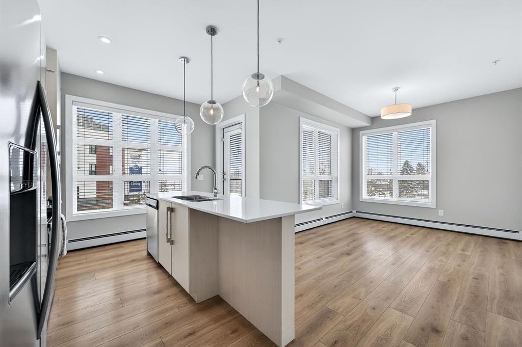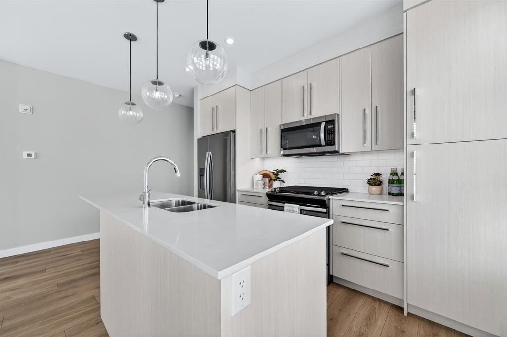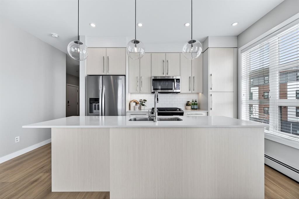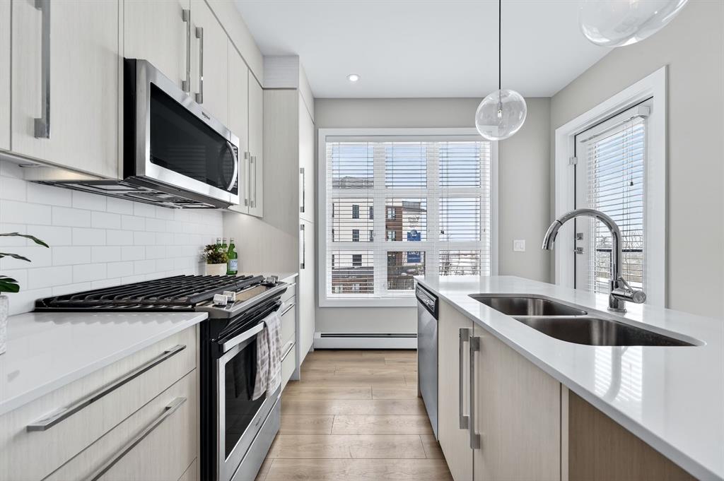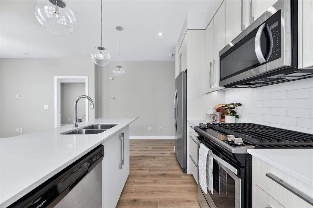 Live in The Maple! This southwest facing corner unit offers stunning, unobstructed views and unbeatable sunsets from your spacious covered third floor balcony! Well-designed for independent living in a vibrant 55+ community, this bright and open 2 bedroom, 2 bathroom home includes a white kitchen with full height cabinets, island and stainless-steel appliances (including a gas range), convenient in-suite laundry, wide plank vinyl flooring, and quartz counter tops throughout. The primary bedroom has walk thr...
